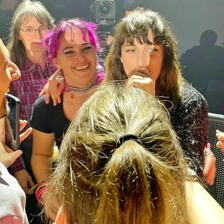 Et là a eu lieu la magie. La salle s’éteint à nouveau, Juliette revient accompagnée de 2 barres de led derrière elle comme seul éclairage. Elle se positionne à l’autre bout de la barrière et commence à faire reprendre aux gens à capella « Le Dernier Jour du Disco ». Toute la salle se met alors à chanter, Juliette plonge dans le public et réalise le slam du siècle.