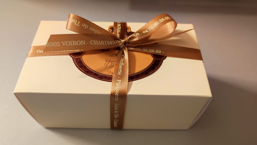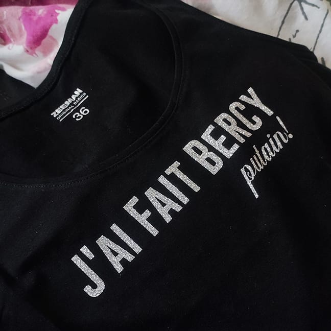 Mes places en poche, je branche le collègue Benoît qui était complètement zinzin que Juliette vienne chanter dans sa montagne. Je me suis dit que j’allais essayer de faire un nouveau cadeau à Juliette (je suis irréductible) et cette fois-ci, j’allais apporter pour toute l’équipe les bonnes choses de la région, à savoir la Chartreuse et le chocolat Bonnat, qui font notre réputation. Pour la blague, je lui avais aussi préparé un débardeur pimpé « J’ai fais Bercy, putain! ».