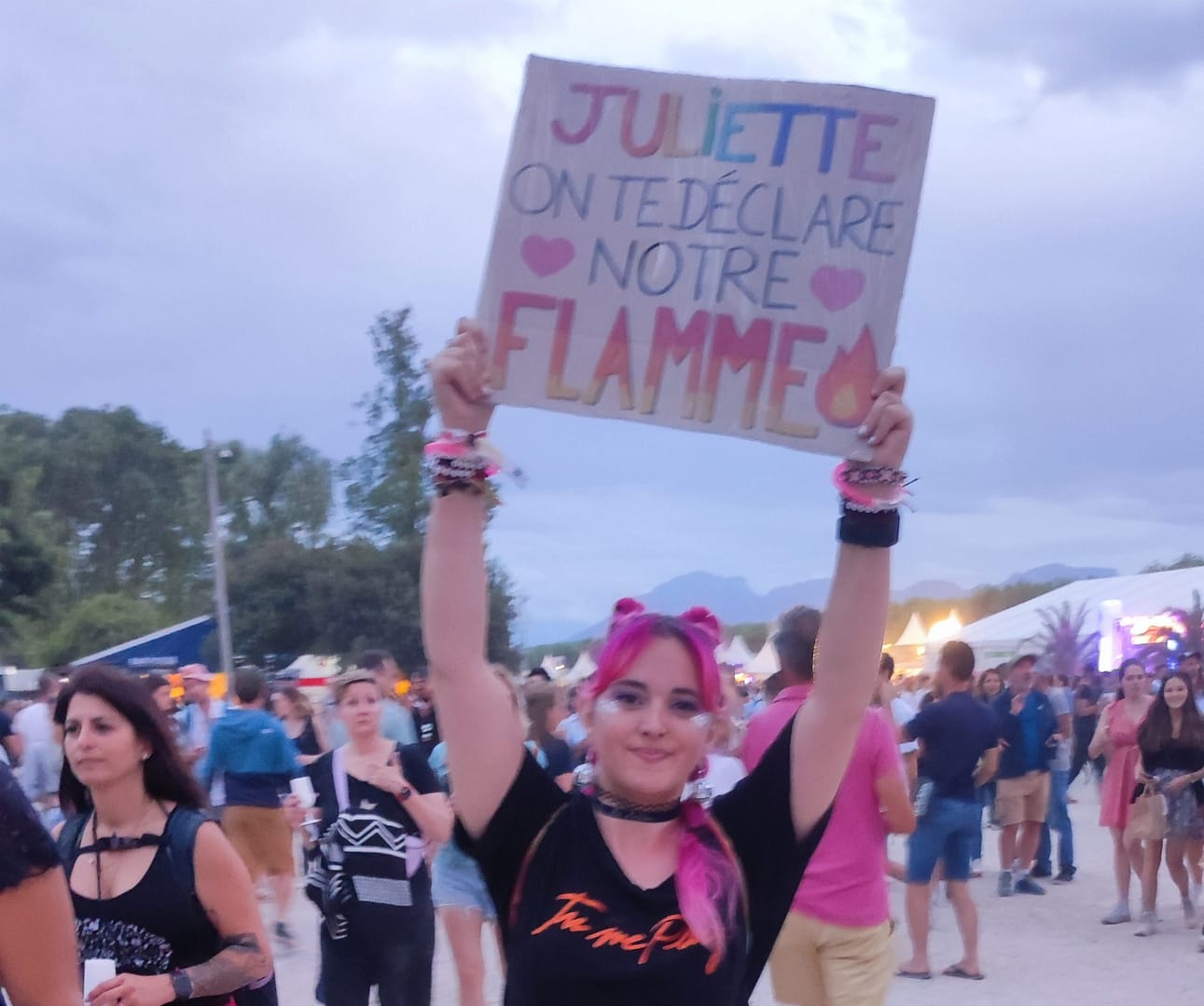 Le 5 Juillet 2023, on prend la route pour Aix-Les-Bains. Il fait beau, et plutôt chaud, on avait peur de la pluie, mais on va commencer à flipper de la canicule. Après s’être garés beaucoup trop loin, on a dû marcher plus de 20 minutes pour rejoindre le site du festival. Et en arrivant, on entend Juliette qui répète, j’étais beaucoup trop heureuse.
